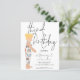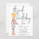 Um preço orçamentário menor, alternativo de papel de 4,5" x 5,6". Os envelopes são um extra opcional. Um design legal para a aniversário de 3 anos de sua filha tem uma escrita de estilo de letra de tendências e uma ilustração abstrato de uma menina loira em um doce dungarees com um padrão arco-íris um fundo branco.