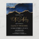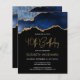 Este convite de aniversário de 40 anos de tendência apresenta uma imagem de aquarela de um geode agado em tons de azul com realces de ouro falsos. As palavras "aniversário de 40 anos" aparecem na falsa brilha dourada em letra decorativa moderna de escrita manual. Personalize-o com o nome do honroso em texto dourado e os detalhes em branco. A mesma imagem azul de agate aparece no lado inverso.