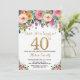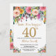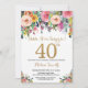 Convite para aniversário de 40 anos de Surpresa Floral para Mulheres. Flor Floral de Aquarela. Dourada Glitter. Rosa, Amarelo, Laranja, Flor Roxo. Aniversário Adulto. Para mais personalização, clique no botão "Personalizar" e use nossa ferramenta de design para modificar este modelo.