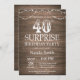 Rustic Surprise aniversário de 40 anos Invitation with Rustic Wood Background. Luzes de Corda. Retro de Vintagem do País. Aniversário Adulto. Homens ou Mulheres Aniversário. Para mais personalização, clique no botão "Personalizar" e use nossa ferramenta de design para modificar este modelo.