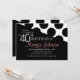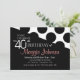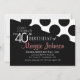 Este na moda sobre a festa de comemoração da colina convida as cores preto e branco com texto rosa e bolinhas pontilhadas em um plano de fundo com padrão diagonal. É simples e elegante para um clássico evento de 40 anos para uma mulher madura.