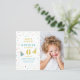 Um convite de aniversário fotográfico de crianças caprichadas com aspersão do arco-íris, nome grande e idade e chapéus de festas. Clique no botão editar para personalizar este design.