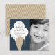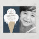 Um convite de festas de aniversário de criança cônico com um cone de sorvete de disquete desenhado à mão com borrifagens arco-íris e fotografia de criança. Todas as cores de texto e fundo são personalizáveis para que você possa facilmente alterar a fonte, a cor, a mensagem e o posicionamento para torná-la realmente exclusiva. Clique no botão editar para personalizar este design.