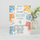 Aumente a comemoração com este adorável convite de aniversário para crianças com robôs de aquarela! Com oito robots coloridos, estilo cartoon, a espreitar de todos os lados, rodeados por engrenagens e ferramentas lúdicas, esta placa vertical de 5 x 7 polegadas é perfeita para meninos e meninas que amam a tecnologia. O design inclui uma área central espaçosa para todos os detalhes do seu partido e é ideal para festas de aniversário de robôs, STEM ou futuristas.