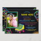 Foto divertida brilhando no convite para a festa de patins escuros. Incluindo as costas.