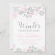 Inverno Onederland primeiro convite de aniversário com flocos de neve cor-de-rosa-bebê e prateada