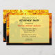 Convite de aposentação único para um bombeiro ou chefe de bombeiros. Design tem dois bombeiros a lutar com uma mancha com fundo de fogo. Fácil de personalizar com os detalhes da sua festa.