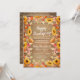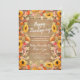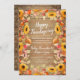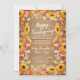 O convite jantado de Ação de Graças da Rússia com folhas de cor d'água, bagas girassóis e abóboras arranjadas numa armação sobre fundo de madeira. Cores de outono brilhantes e vibrantes em marrom enferrujado, laranja, vermelho e amarelo.