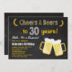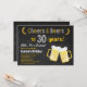 Surpresa, Cheers e Beers aniversário de 30 anos. Aniversário Adulto. Aniversário de cerveja para homens. Fundo Preto e Branco do Quadro de Quocientes. Para mais personalização, clique no botão "Personalizar" e use nossa ferramenta de design para modificar este modelo.