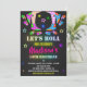 Cilindro patinando convite de aniversário Roller convite de festas Roller sk8 convite Rink do cilindro. O convite para o aniversário do "Rolling Non Color" é para uma garota de skater que faz um par de pernas vestindo skates e algumas estrelas ao redor. Perfeito para festas interiores no rolo ou fora do parque de skates. Basta editar esta modelo para fazer seu próprio convite!