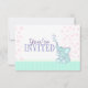 Convite para chá de fraldas unisexo bonito, com elefante giro soprando bolhas em forma de coração com bandeiras de bunting. Bonito convite para chá de design unisexo com um elefante sortudo giro. Personalize com seus detalhes de chá de fraldas. Ilustrada e desenhada exclusivamente por Sarah Trett.