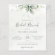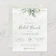 Bonito convite para brunch bridal com aquarela eucalipto e folhas de ouro.