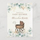 Elegante Aquarela Eucalyptus Deixa folhas verdes delicadas de folhagem de eucalipto com uma carruagem antiga de bebês antigos. Uma adição de excelente à decoração do seu chá de fraldas partidário ou sexo revela festa. Personalizado e editável Este design apresenta um chá de fraldas chamado aquarela floral, elegante carruagem vintage eucalipto, com uma cesta belíssima buggy vitoriana, botânica de garotinha neutra em gênero, com um mínimo e moderno, excelente para a mamãe-mãe, diversão na moda elegante e bonita, uma caligrafia marrom e sensual, simples e moderna tipografia de script, com excelente de fundo verde para gravidez de novo bebê