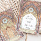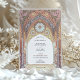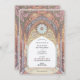 Este convite para o casamento de Art Nouveau, inspirado no Gótico/Rococo, apresenta um espantoso design de arco floral adornado com flores vibrantes, vermelhas, douradas, azuis e roxas. O intrincado efeito colorido, colunas elegantes e delicados motivos botânicos acrescentam sofisticação ao eterno. O grande teto e os detalhes do ornamentado misturam perfeitamente a arquitetura gótica e a estética do Art Nouveau, ideais para casais que buscam um romântico, inspirado na natureza, e um luxuoso anúncio de casamento.