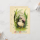 Adorável Pássaro Pequeno Adorável com coloração branca e preta, como um pintinho-a-dee fino ou montanhoso, rodeado por folhas e flores neste convite para o dia da Páscoa.