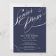 Este elegante convite para bailes de formatura apresenta letras brancas de script na frente e uma cor sólida no verso. Adicione seu texto personalizado usando o formulário modelo. Escolha as cores da sua escola para o plano de fundo usando o menu Personalizar. O texto adicional pode ser colocado no verso deste convite, conforme necessário.