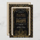 Entra no brilho e glamour dos 20 Roaring com este elegante e inspirado no baile de formatura! O design apresenta um estilo clássico de Art Deco com padrões geométricos ousados, sotaques de folha de ouro e um fundo preto rico para um olhar verdadeiramente digno de Gatsby.