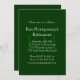 Grandes iniciais em um esquema de cores de tom, subtilmente acentuam este convite de aposentadoria masculino em um plano de fundo verde clássico. É apresentado no documento de base; no entanto, recomendo o peso e a textura luxuosos do papel de linho.