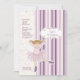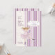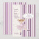 Um convite encantador com uma bailarina de "recorte" contra um fundo de listras roxas e cor-de-rosa sobreposto com um padrão de flores e de coração rebarbados. Perfeito como um convite de aniversário ou um recital de dança.