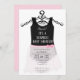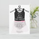 Tutu bailerina cor-de-rosa, convite que pode ser personalizado com a inclusão dos detalhes do seu chá de fraldas. A design apresenta uma saia rosa com a tradicional borda preta com um arco rosa. O verso do convite tem um padrão repetido de pequenas formas de diamante rosa contra um fundo branco. Este convite poderia ser usado para qualquer balé ou bailarina chamada de chá de fraldas surpresa para uma menina.
