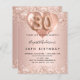 Para um aniversário de 30 anos elegante. Um fundo de aparência metálica falsa rosa dourado. Decorado com ouro rosa, falso cor-de-rosa, faíscas e balões. Personalize e adicione um nome e detalhes da festa. O nome é escrito com um script de estilo manuscrito, número 30 com fontes de estilo de balão.