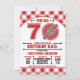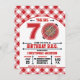 Celebre o Big 7 O com este Convite Barbecue de Aniversário com uma grelha vermelha e um padrão de toalha de gingham. Personalize com seu próprio texto. Ilustração original por pj_design. Contacte-me para obter qualquer ajuda de que necessite.