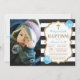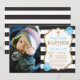 Azul Negro e Batismo Dourado com brilho com foto personalizada. Batismo Menino. Primeira Comunhão. Cristo. Dedicação Infantil. Black and White Stripes. Flor Floral Azul. Para mais personalização, clique no botão "Personalizar" e use nossa ferramenta de design para modificar este modelo.