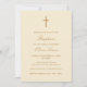 Convite para Batismo Elegante de Creme de Script bege, personalize conforme desejado, usando o modelo de personalização on-line antes de fazer o pedido. Este convite bonito apresenta tanto o texto cruzado como o na moda elegante em tom ouro de bege sobre fundo creme.