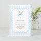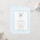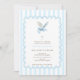 Um doce design de convite para batismo com uma pomba de aquarela, borda redimensionada e listras de azul macio. Perfeito para celebrar o batismo do seu bebê ou batizar com a família e amigos. Detalhes personalizáveis incluídos.