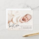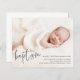 Este convite para o Batismo de Foto do Bebê do Script Moderno apresenta uma bela foto horizontal de sangria de cheio e uma arte de batismo escrita à mão e um texto editável mínimo. Clique no botão editar para personalizar este design.