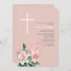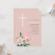 Celebre o batismo do seu filho com um convite floral rosa e espantoso. O design apresenta lindos lírios cor-de-água, cor-de-rosa, e uma elegante cruz branca, colocada contra um fundo de pincel suave. Use as ferramentas de design para personalizar o texto e as fontes. Também disponível como download digital.
