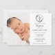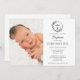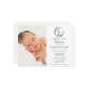 Convide seus amigos e parentes próximos a se juntarem para celebrar o batismo abençoado de seu bebê, já que seu precioso pequeno é recebido na fé com amor e alegria. O convite apresenta uma fotografia de bebê tenra e também uma cruz no centro de uma coroa para simbolizar a ocasião sagrada. Personalize os detalhes da cerimônia e da recepção com um texto RSVP fácil de compartilhar neste belo momento de fé.