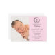 Convide seus amigos e parentes próximos a se juntarem para celebrar o batismo abençoado de seu bebê, já que seu precioso pequeno é recebido na fé com amor e alegria. O convite apresenta uma fotografia de bebê tenra e também uma cruz no centro de uma coroa para simbolizar a ocasião sagrada. Personalize os detalhes da cerimônia e da recepção com um texto RSVP fácil de compartilhar neste belo momento de fé.