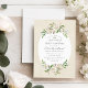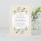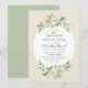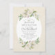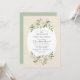 Barato personalizado de batismo para bebês com uma elegante borda floral pintada em sotaques de marfim, folha verde e folha de ouro. Personalize o modelo com os detalhes do evento ou use as ferramentas design para personalizar o texto, escolha qualquer cor de fundo e edite as fontes para criar seu próprio design de convite exclusivo. O verso apresenta um fundo verde bonito ou usa o espaço para adicionar texto ou fotos, se necessário. Este lindo design floral neutro é perfeito para qualquer estação.