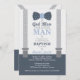 Convide os participantes para o batismo do seu filho com este clássico convite de batismo do homenzinho! Disponível em muitas cores e padrões.