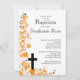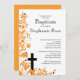 Nosso batismo sagrado floral de na moda é uma primeira impressão moderna e divertida para o dia especial de batizar do seu bebê. Nosso convite cor de laranja e branco apresenta um belo quadro floral cor de laranja na moda definido em um fundo branco nítido. A parte de trás tem uma cor correspondente para um toque especial extra. design moderno de diversão para impressionar seu convidado. Convite perfeito para uma primeira comunhão santa, batismo, batizar ou confirmar. Visite nosso compro para opções de cores adicionais para meninas batizando, batismo de meninas, batismo de bebês, batismo de bebês e batizado de bebês. ©Mujka