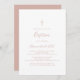 Este simples convite minimalista de batismo rosa-ouro é perfeito para um batismo moderno para bebês ou batismo. O design simples e elegante apresenta a tipografia de script clássico e de rico em rosa-ouro.