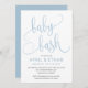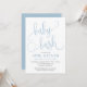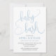 Um simples e elegante convite para chás de fraldas. Perfeito para um chá moderno de casais. Este convite apresenta uma inscrição azul empoeirada para celebrar o bebê especial a caminho. Preencha o texto selecionando o botão "Personalizar" no lado direito do item.
