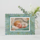 Doce bebê é levado para um leito macio de aqua e creme. O antigo design cromolitógrafo pode anunciar a chegada de seu novo membro da família. Está pronto para o seu toque pessoal.