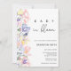 O convite para chás de fraldas apresenta lindas flores silvestres de aquarela e um roteiro de caligrafia que é perfeito para chás de fraldas de primavera, verão ou outono. Bebê na flor!