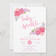Um convite para bebês, 5 horas por dia, 7 dias por semana, com detalhes caligraficos adoráveis em tons de fúcsia e lavanda