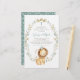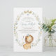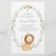 Convide familiares e amigos para o seu evento de bênção bebê com este convite personalizável. Ele apresenta ilustrações aquáticas de um lindo preço de leão de bebê e uma coroa de folhagem com um padrão correspondente. Personalize adicionando nome, data, hora, local e outros detalhes do evento. Este convite de bênção de leão é perfeito para bênçãos de bebês.