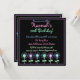 Este design retrô divertido é excelente para qualquer tipo de festa - personalize-o para torná-lo perfeito para você. Flores em azul, rosa e verde em um fundo preto quadrado são impressionantes e engraçadas. Verifique nosso envelope de coordenação, adesivos e selos também!