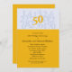 Convite de aniversário de casamento moderno e atraente. Ótimo para celebrar 50 anos de casamento com estilo. Apresenta um grande número 50 em cor dourada, que é a cor tradicional para este aniversário. Outros números mostrados em uma cor mais clara para simbolizar os anos passados. Convite perfeito para celebrar este aniversário marcante em casa, num restaurante ou local favorito. Design atemporal e sofisticado. Adicione sua própria mensagem.