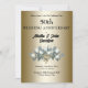 Este elegante convite de aniversário de 50 anos de casamento é projetado com um buquê de tulipas brancas, sobre um fundo dourado. O texto da frente inclui os nomes do casal, data do evento, horário, local e endereço. O texto do verso inclui os detalhes de RSVP sobre um fundo dourado, com sutil destaque de tulipas brancas. Para personalizar, basta inserir seus detalhes em nosso modelo fácil, substituindo o texto de exemplo. Certifique-se de ver as outras peças que combinam com esta Coleção de Aniversário de 50 Anos de Casamento Golden.