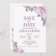 Este convite para a data faz parte do nosso tema de casamento Amelia. Este convite é uma opção perfeita para um casamento elegante e romântico. Com seus tons de lilás, roxo e rosa com delicados padrões florais, esse tema vai adicionar um toque de doçura e refinamento ao seu grande dia. Fazer do seu casamento um dia inesquecível é fácil usando elementos decorativos como guardar as datas, convites ou cartões de agradecimento. Nota: Este design não apresenta folha de ouro real. É um gráfico de alta qualidade feito para se parecer com folhas de ouro.