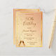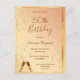 Elegante e glamouroso 50º (ou qualquer idade) convite de aniversário. Cor de fundo ombre ouro e rosa de chic com uma simples imagem de ouro fino. Decorado com bolhas festivas de champanhe e um par de óculos. Letras ouros escuras. O título: 50º Aniversário e o nome é escrito com scripts de estilo modernos, escritos à mão. Voltar: Dica: Se você não quiser que pareça um cartão postal, clique em personalizar, vá para o verso e remova o divisor e poste o carimbo.