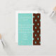 O convite azul 5x4, maravilhosamente projetado, é enfeitado com um fundo marrom com bolinhas azuis em um lado e uma faixa branca para adicionar um detalhe de contraste, embora corresponda à inscrição. A escolha da formulação pode ser alterada, assim como a fonte, para melhor se adequar ao seu gosto.