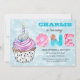 Convite para primeiro aniversario com fundo cintilante azul e cupcake. Clique em personalizar esta modelo para alterar o texto | Para alterar o estilo ou a cor da fonte, clique em para PERSONALIZAR MAIS.