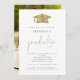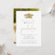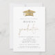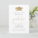 Boné de Formando Dourado para Graduação Moderno 2024. A graduação está em um script de na moda. Personalize facilmente o resto do texto de acordo com as suas necessidades. No topo está um boné de conselho de argamassa de graduação em um efeito iridescente dourado com sombra.